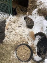 Hi Barrhead, it's April 4, 2026 and we have some 4-week old baby bunnies as well as some 4-month old bunnies for sale just in time for easter photos. These bunnies are my own cross between hardy Rex meat rabbits and lionhead bunnies. Not only are the cold hardy but they are healthy eaters and were all born and raised outside in the winter without heat. We feed them all sorts of produce scraps from our own kitchen as well as standard pellets. They were also raised inside our Chicken enclosure (as you can see chickens in the photos) without any trouble.